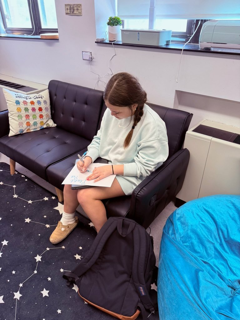 During their time together, the students opened the gifts and wrote Christmas wish lists as they got ready for winter break.